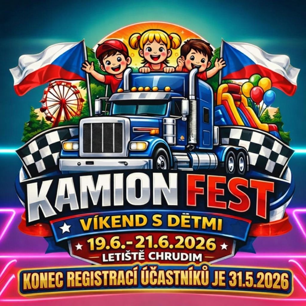 Registrace na Kamion Fest 2026 se nemění a cena registrace je nadále na částce 1.500,- Kč. V registraci je nadále povolený vjezd do areálu v pátek 19.06.2026 a odjezd v neděli 21.6.2026 nejdéle v pondělí 22.06.2026 během dopoledne. V ceně registrace je nadále 1x řidič a 1x spolujezdec starší 15ti let. Dětí do 15ti let můžete mít klidně plné auto :-). Řidič má v ceně registrace ZDARMA nedělní snídani a NOVĚ také sobotní snídani. Stanování za auty a vlastní grily povoleno :-). Doprovod, který přijede v sobotu 20.06.2025 po 9:00 hoď., bude parkovat auta z důvodu bezpečnosti návštěvníků na vyhrazeném parkovišti a řidič se bude řídit pokyny pořadatelů. Bez řádné úhrady registrace a potvrzení její úhrady, je taková registrace NEPLATNÁ !!!
